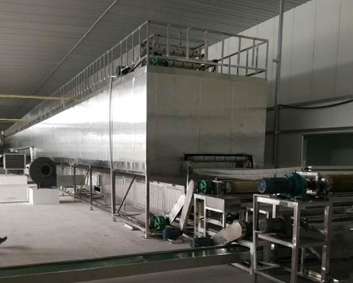 該生產(chǎn)線一改傳統(tǒng)擠壓漏瓢式,室外掛桿涼曬生產(chǎn)工藝,夾帶成型,恒溫恒濕低溫冷凍,不受季節(jié)氣候的影響,連續(xù)化不間斷生產(chǎn), 有效克服了掛桿式成品率低、衛(wèi)生質(zhì)量差條形彎曲的缺陷,大大提高了成品率和平整度。 適用多種淀粉制作水晶粉絲、粉條、寬粉、米粉;成品晶瑩透亮耐煮耐泡、不糊湯、不斷條、不粘連。具有干凈衛(wèi)生、外觀平整、晶瑩透亮、口感細膩、食用方便、易貯運等優(yōu)點。